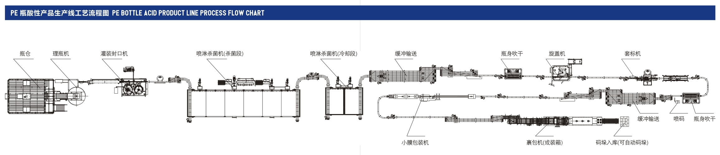 PE 瓶酸性产品生产线工艺流程图